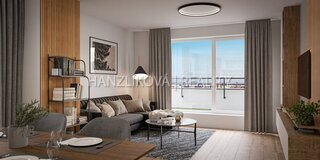 Byt je orientovaný na jiho-východ, má prostornou terasu, která je
