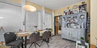 spotřebičů, , jídelní stůl, židle, sedací souprava, skříně. Dům je