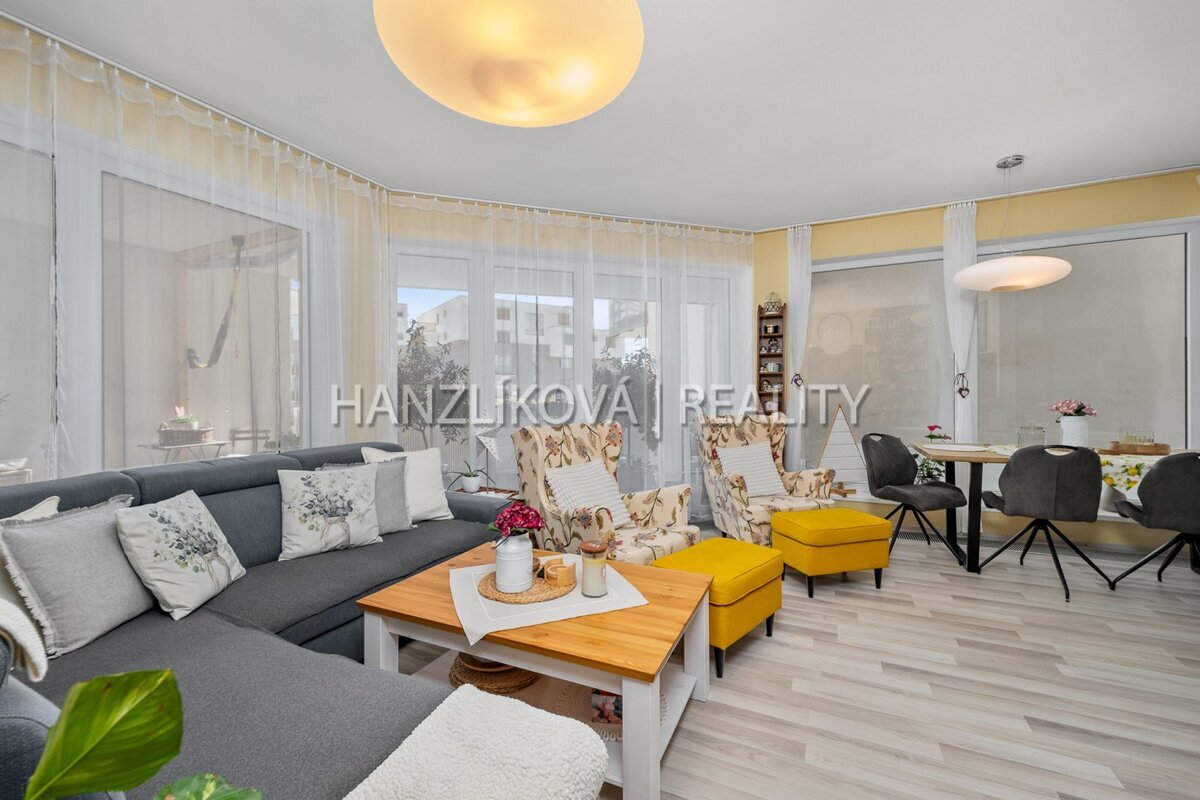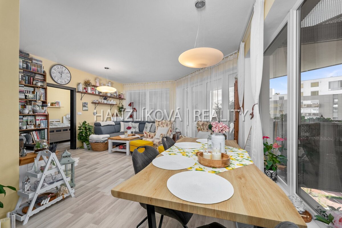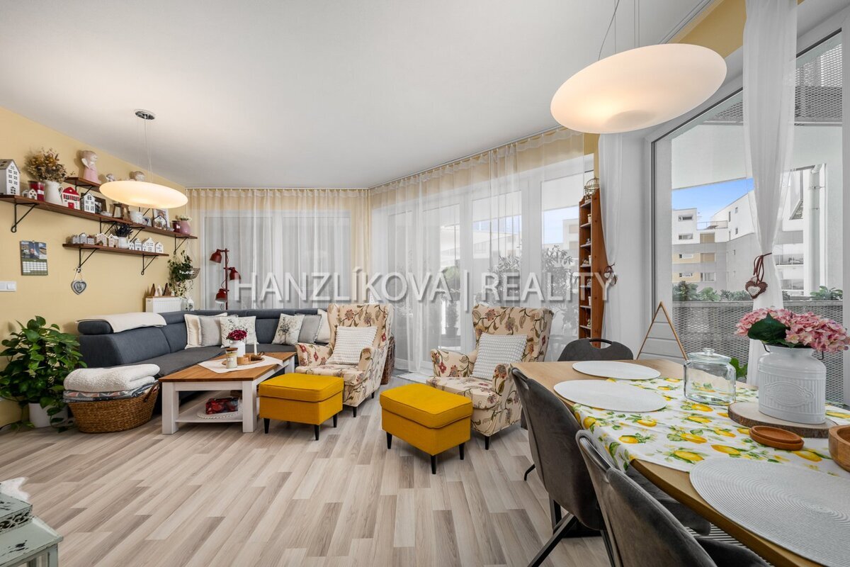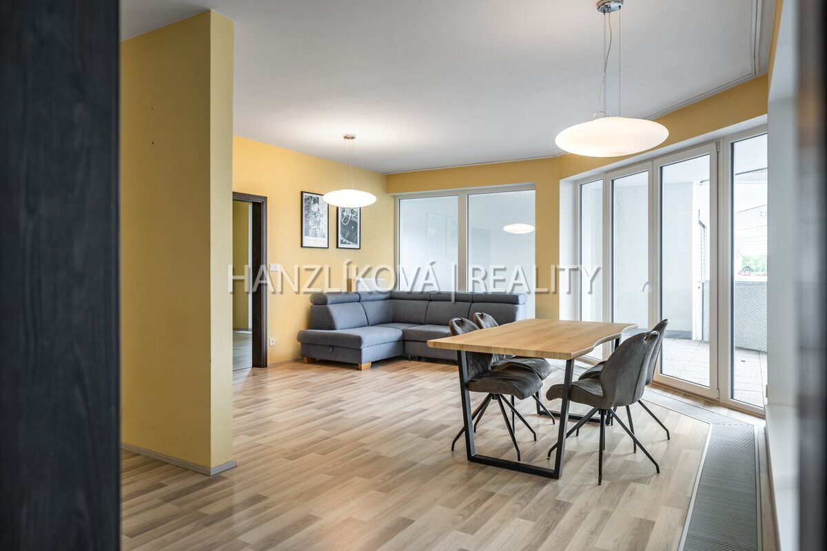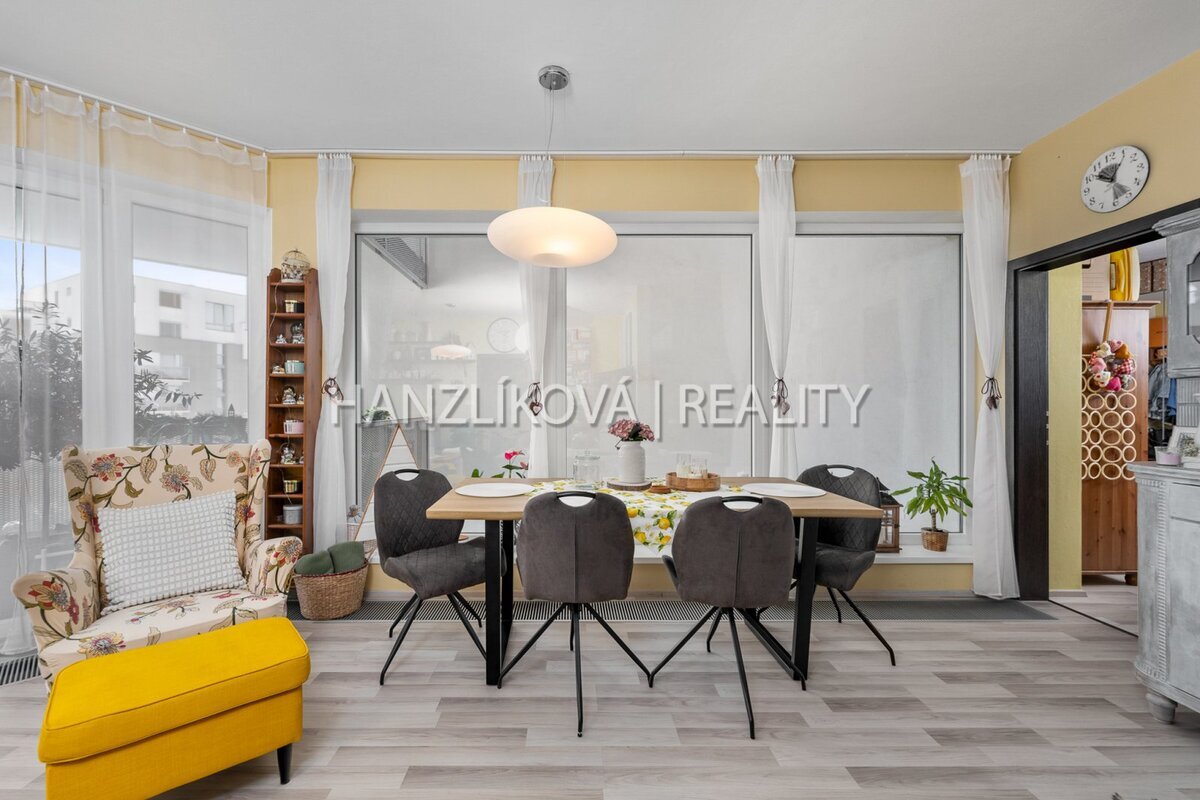 a prostorného obývacího pokoje s kuchyní a jídelnou. Byt je orientovaných