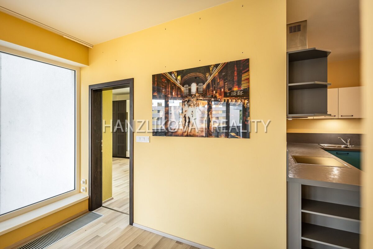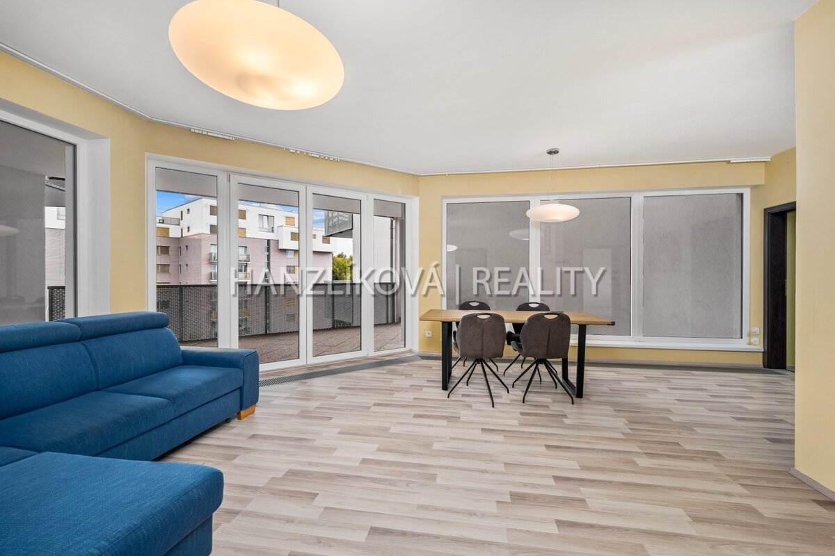 a prostorného obývacího pokoje s kuchyní a jídelnou. Byt je orientovaných