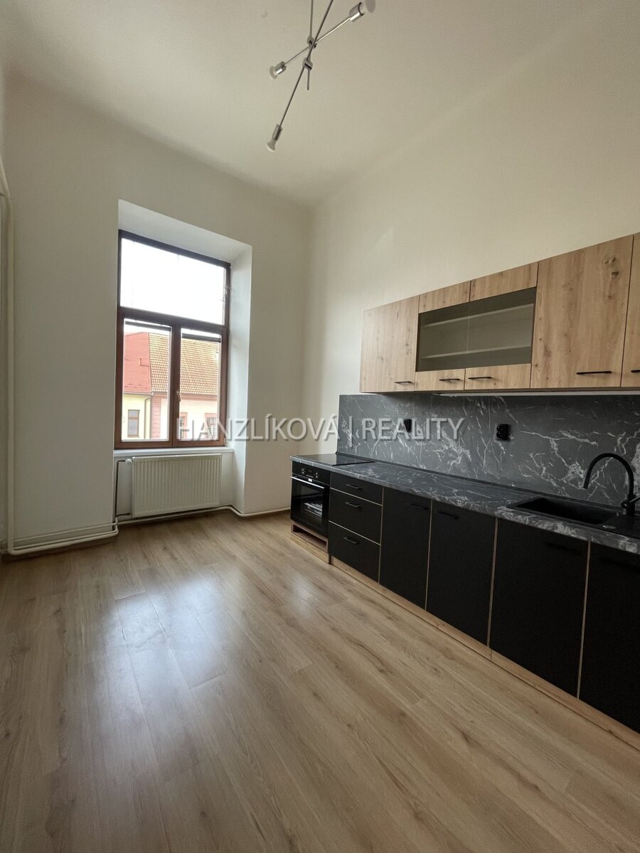 Nabízíme k pronájmu bytovou jednotku 1+1 ve zděném domě v centru města, a to Žižkově třídě. Byt o celkové výměře cca 49 m2 se nachází v 2.NP. Bez výtahu. Byt se skládá z: prostorného obývacího pokoje, s odděleným kuch. koutem. a koupelny s wc. Byt je kromě kuchyňské linky , osvětlení ve všech místnostech, vybavení koupelny, nezařízený. Vytápění je zajištěno plynovým kotlem. Veškerá občanská vybavenost je v těsné blízkosti, historické centrum města je vzdáleno jen pár minut chůze od domu. Možnost pronájmu parkovacího stání ve dvoře za úplatu 750,–Kč.Byt je volný ihned.