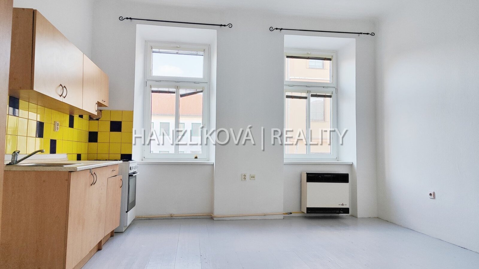Nabízíme k pronájmu byt 1+kk v činžovním domě v ul. Jírovcova v širším centru Českých Budějovic. Byt se nachází ve svýšeném přízemí bez výtahu, má velikost cca 34 m2 a je orientován na sever. Byt se skládá z: předsíně, koupelny s vanou, samostatné toalety a obývacího pokoje s kuchyňským koutem. Byt je zařízen kuchyňskou linkou se spotřebiči (trouba), šatní skříní, osvětlením ve všech místnostech, vybavením koupelny (pračka), jinak je nezařízený. Příjemná poloha, bydlení je vhodné pro všechny věkové skupiny. V blízkosti domu je veškerá občanská vybavenost (OC IGY, Družba, školy, školky, lékař, restaurace, centrum města). Parkování je možné přímo na ulici před domem (zóny). K bytu náleží sklep v 1.PP domu (cca 12 m2). Pronájem bez domácích mazlíčků. Byt je k dispozici ihned.