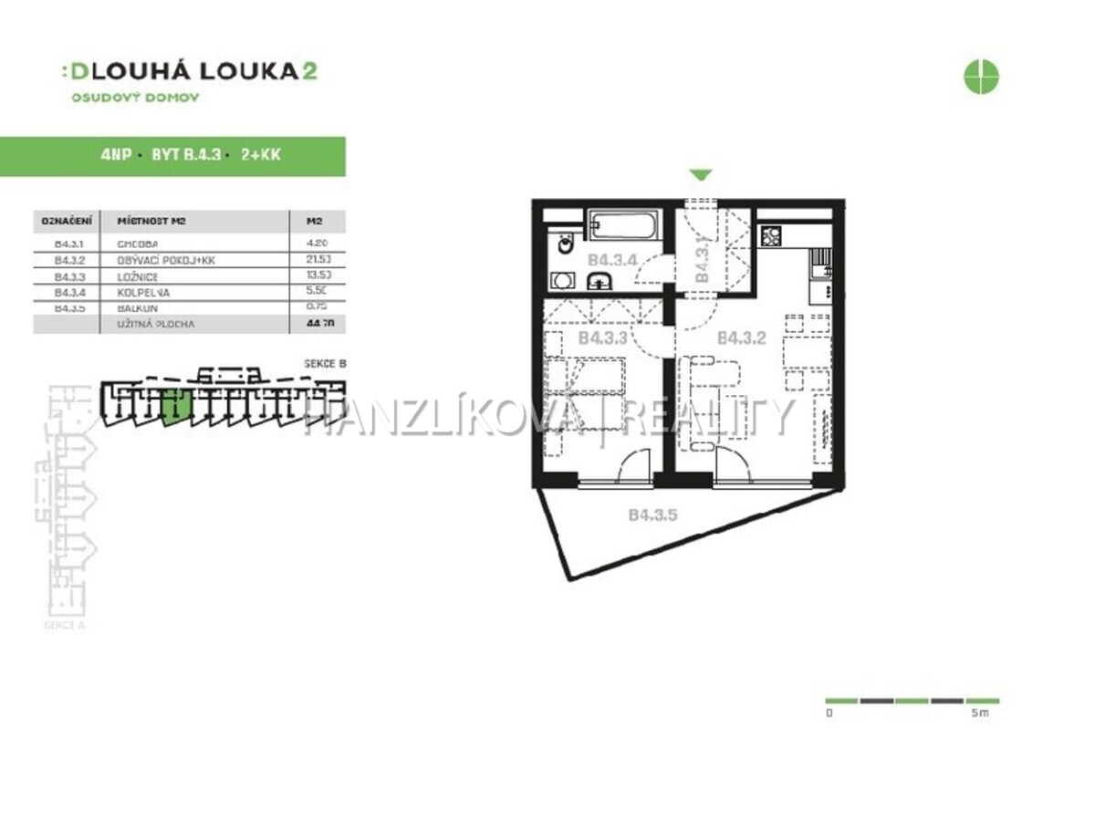 Pronájem bytu 2+kk ve 4.NP s terasou, byt B.4.3, rezidence DLOUHÁ LOUKA 2.etapa