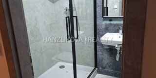 digestoř, vestavná lednice, keramický dřez. Koupelna: sprchový kout, WC,