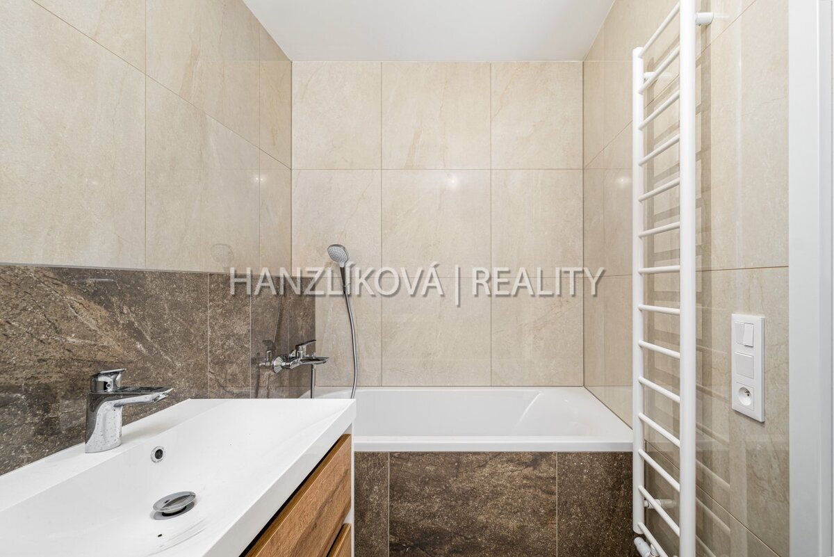 předsíň (6 m2), koupelna s vanou (4,4 m2), obývací pokoj s kuchyňskou